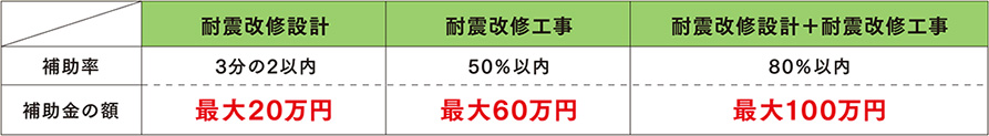 市町村では、今後の大地震に備え、住民の皆様が安心して住み続けられる住まいの確保を図るため、戸建て木造住宅の耐震改修設計、耐震改修工事、建替え工事費用等の補助を実施しています。