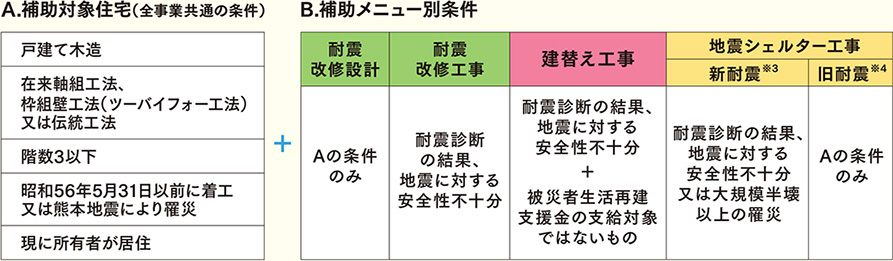 ※3 新耐震:新耐震基準の場合(昭和56年6月1日以降に着工したもの) ※4 旧耐震:旧耐震基準の場合(昭和56年5月31日以前に着工したもの) 注)耐震診断を受けられた場合で、耐震性ありの診断結果が出ている場合は、いずれも対象外となります。